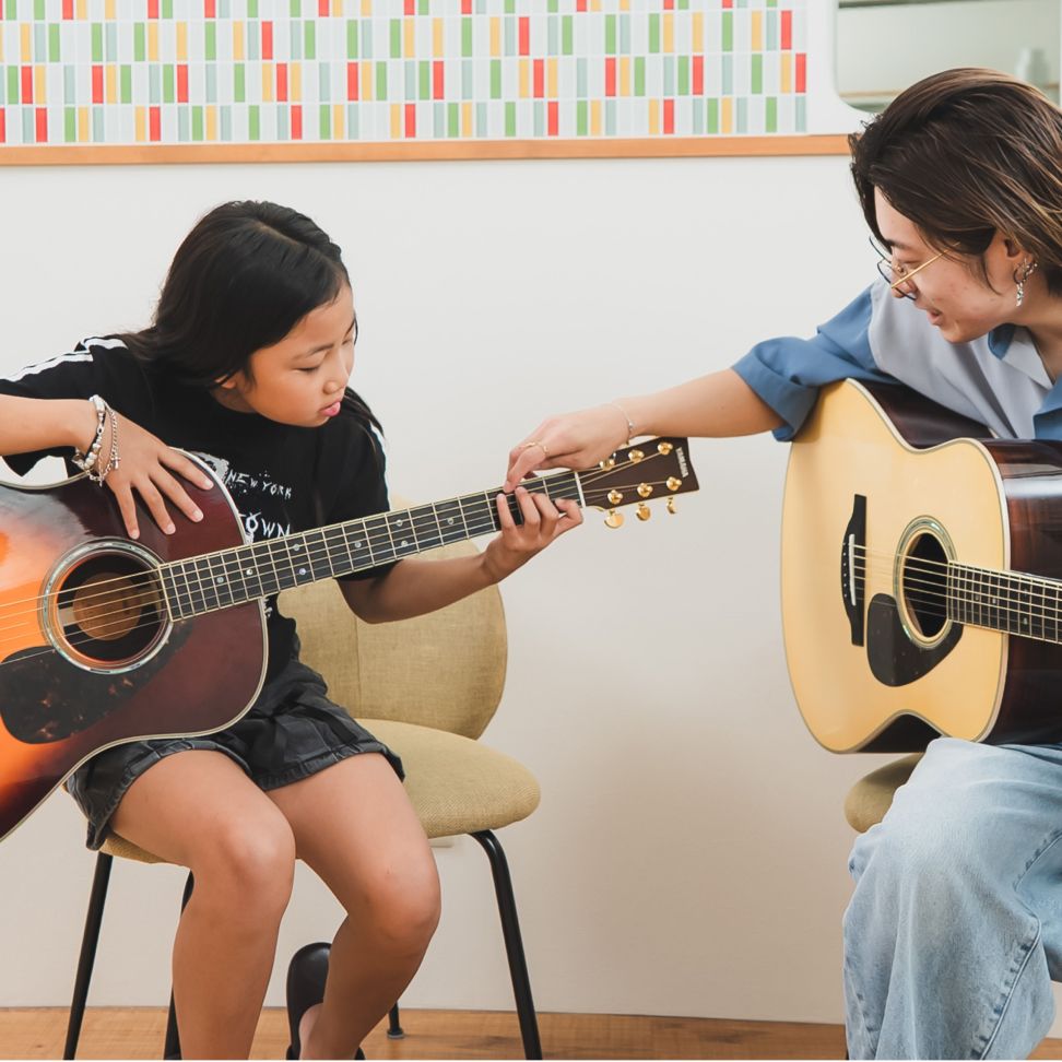 ギターに触れるのがはじめてのお子さんでも、遊びのような感覚から自然に音楽が身につきます。うまくいかない時も、できた時も、一緒に喜べる時間を大切にしています。「音楽って楽しい!」をまずは体験してみませんか?